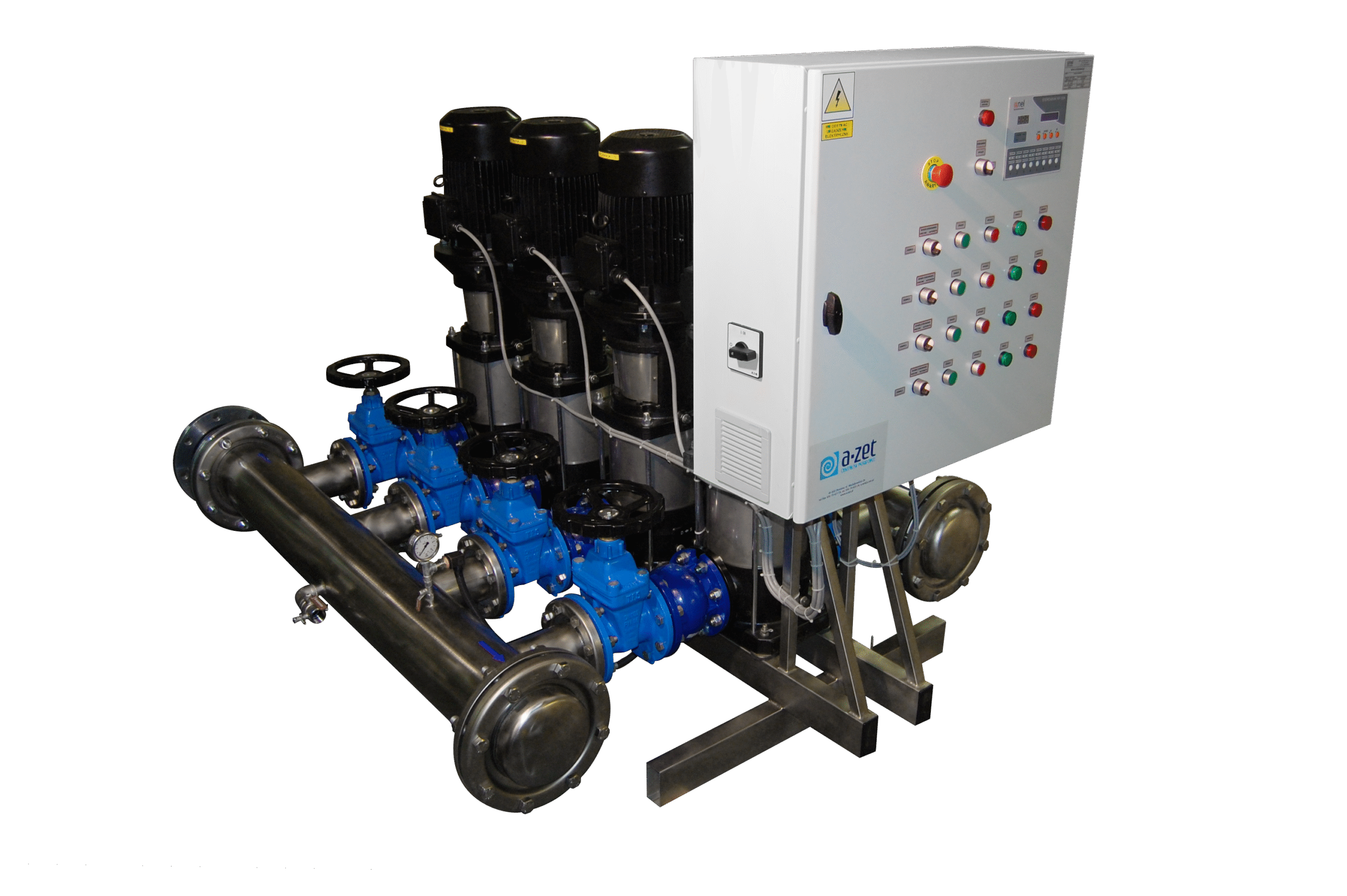 - Każdy zestaw wyposażony jest standardowo w zawory zwrotne, odcinające, manometry, armaturę, zbiornik membranowy, układ rurociągów i podstawę ze stali nierdzewnej.