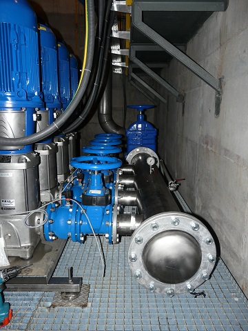 Modernizacja istniejącego zestawu hydroforowego poprzez dołożenie dodatkowej pompy wielostopniowej firmy Lowara wraz z zabudową na ścianie urządzenie sterującego Hydrovar o mocy 22 kW.