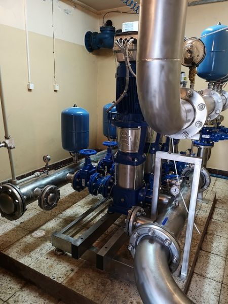 Modernizacja układu pompowego zainstalowanego w pompowni sieciowej. Celem modernizacji było ograniczenie pobieranej mocy poprzez zainstalowanie nowych wysokosprawnych pomp z falownikami na silnikach.