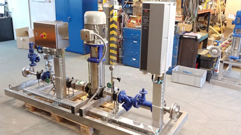 1 pompa typ Movitec VF (KSB) wraz ze sterowaniem przetwornicą częstotliwości Danfoss AQUA Drive FC 202.