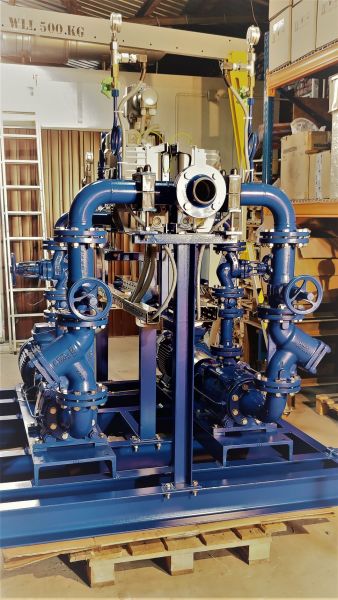 Układ pompowy z pompami Multitec marki KSB z silnikami marki Siemens wyposażony w zawór minimalnego przepływu,