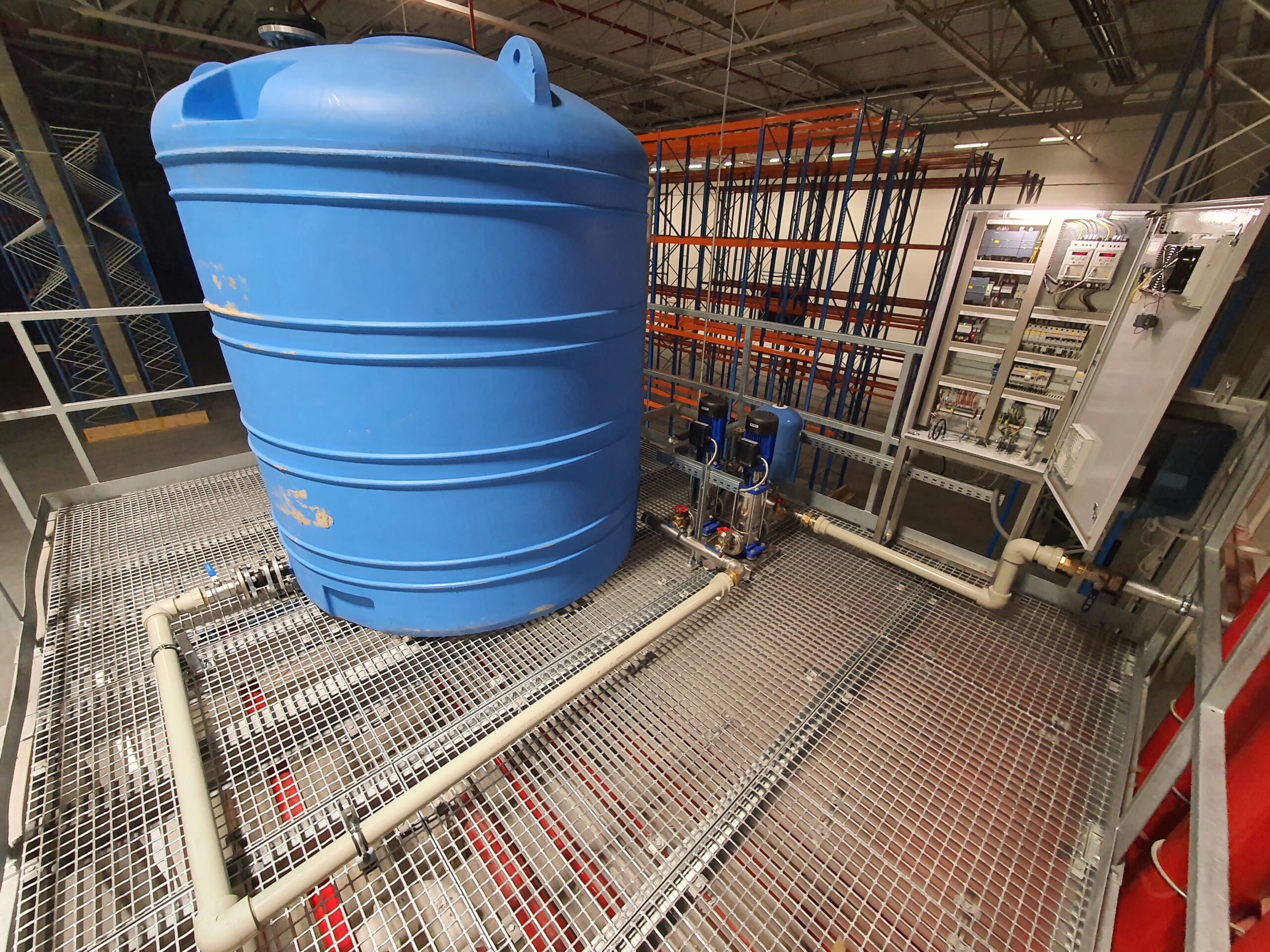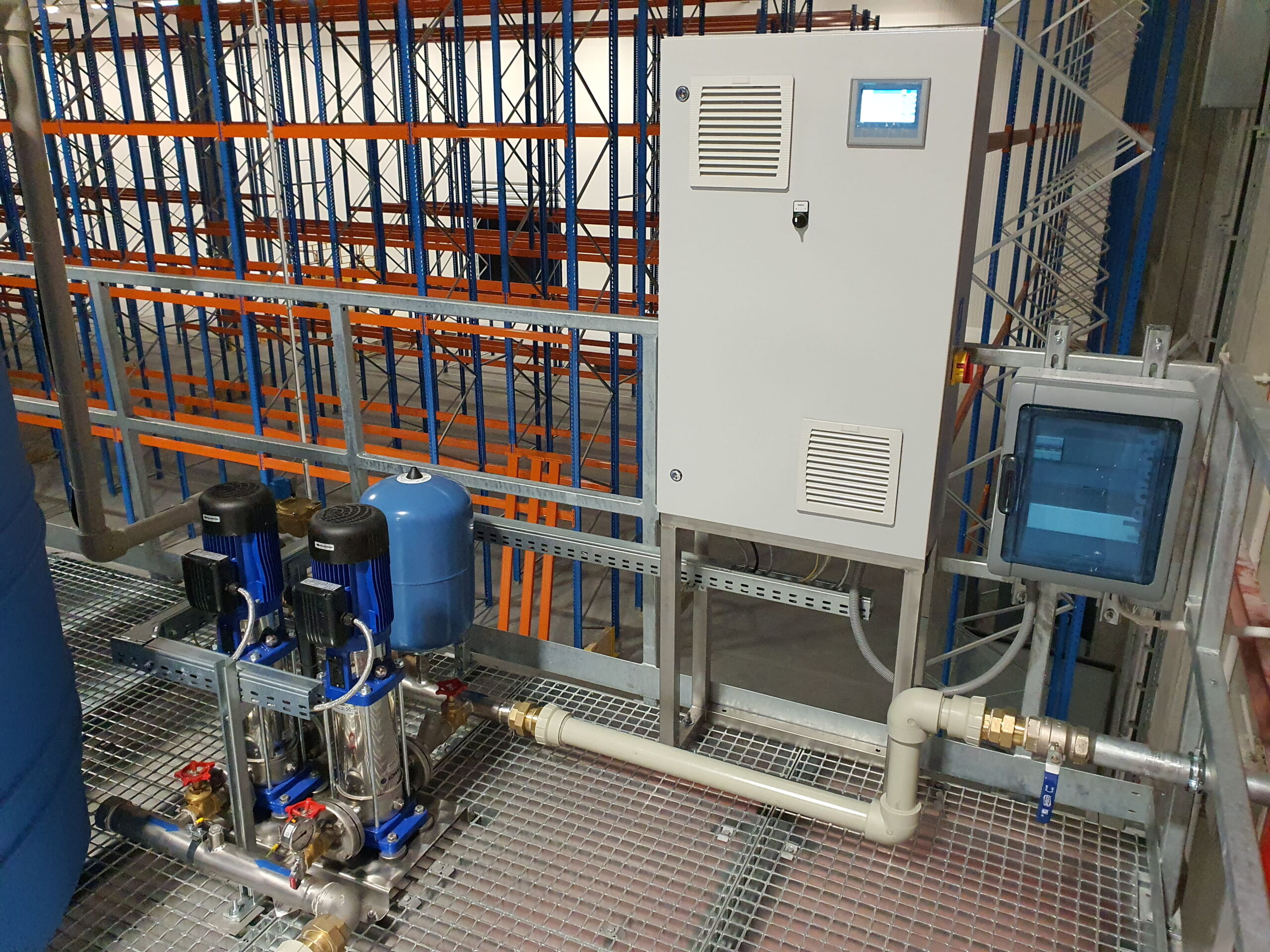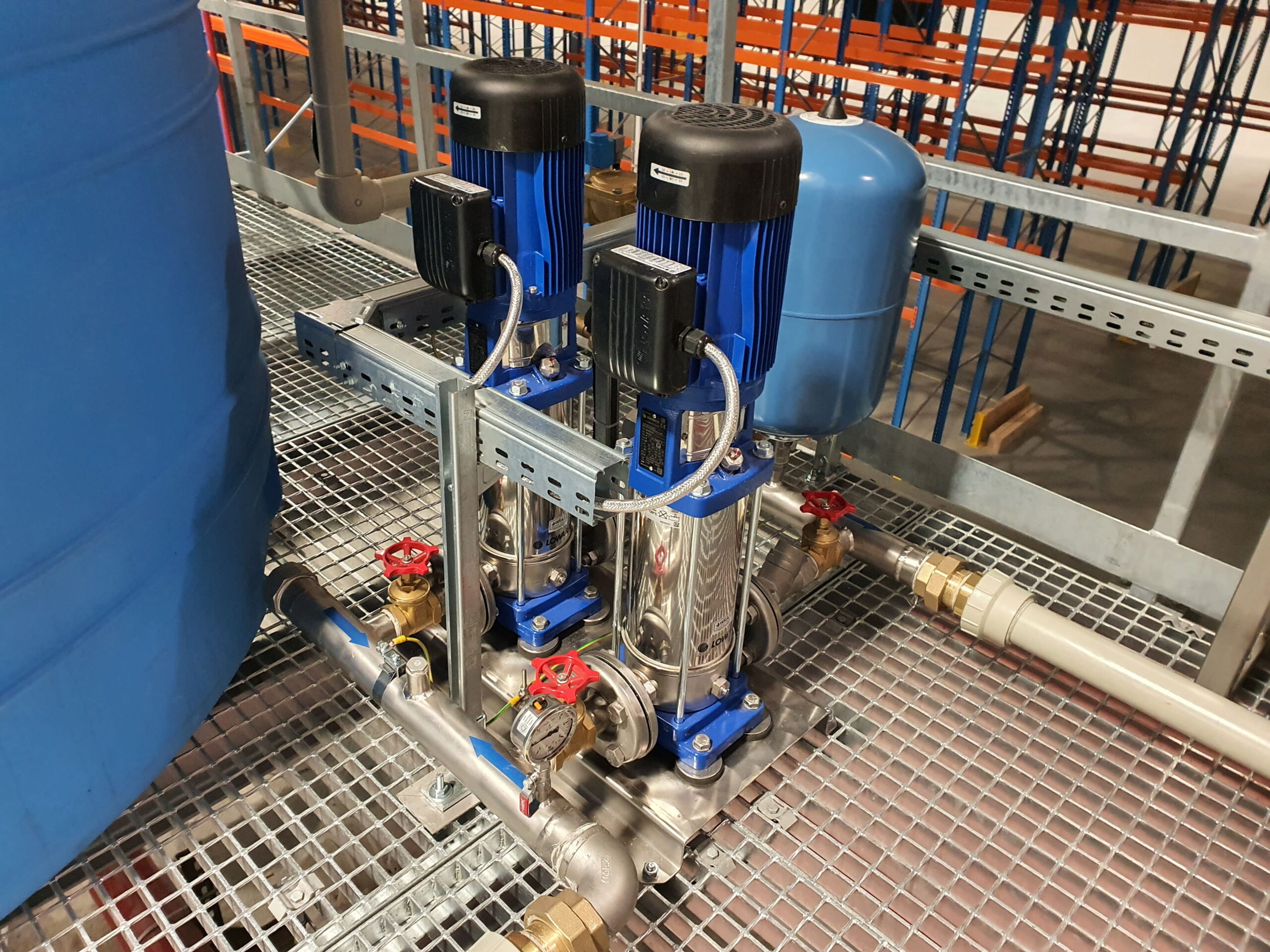 Dobór, dostawa, montaż oraz uruchomienie zestawu pompowego 2×1,5kW zasilającego strefę wody bytowej na nowo wybudowanym obiekcie hali logistycznej.
