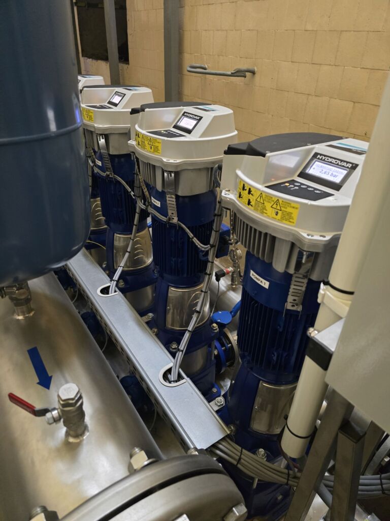 Modernizacja pompowni wody polegająca na dostawie nowego zestawu hydroforowego AZH zbudowanego z pomp wielostopniowych e-SV firmy Xylem z zabudowanymi falownikami Hydrovar w miejsce wyeksploatowanych pomp wielostopniowych. Wymianie podlegały również stare rurociągi ze stali czarnej, które zastąpione zostały rurociągami ze stali nierdzewnej. Całość została wpięta w istniejący system SCADA działający u klienta.