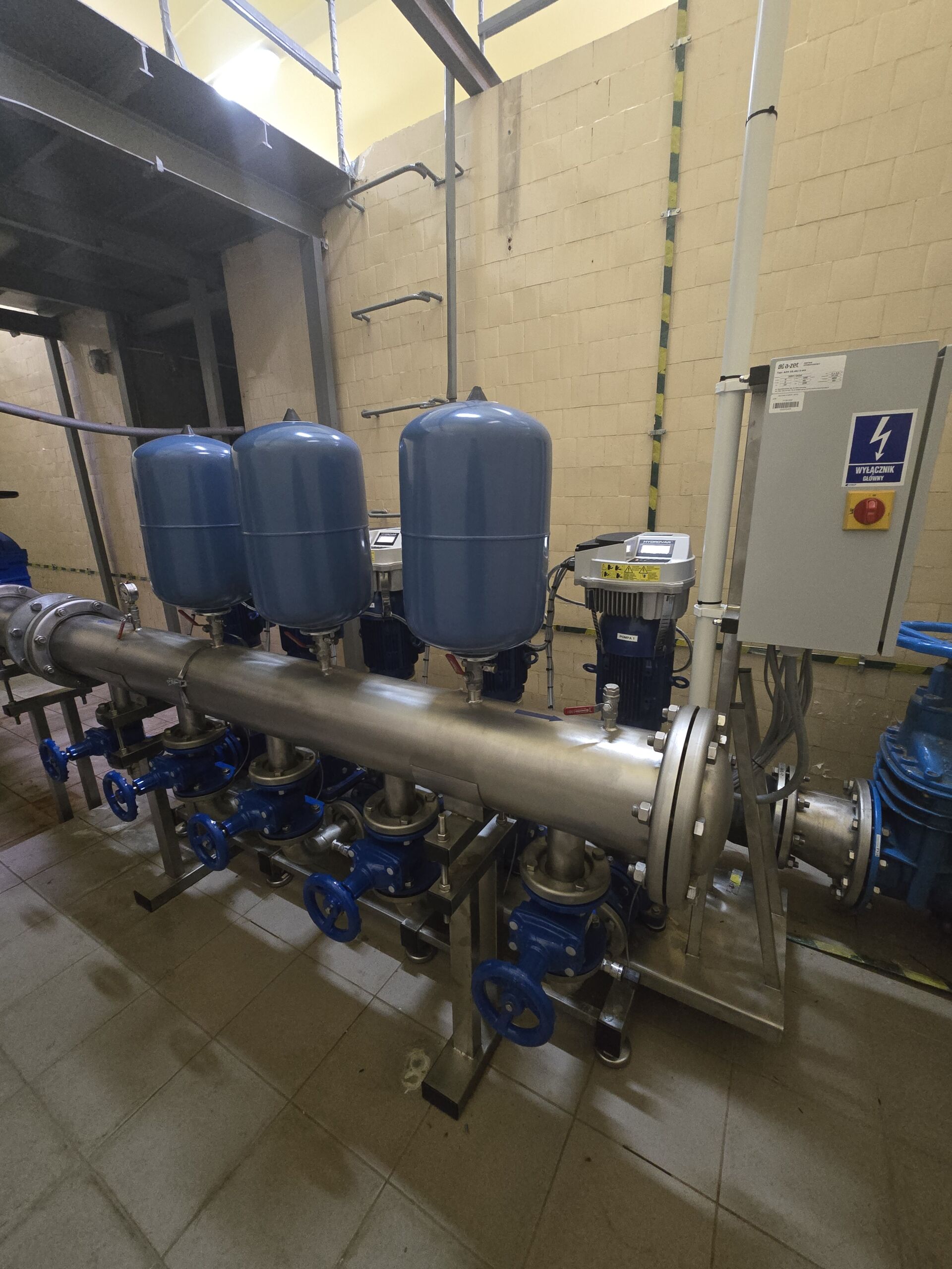 Modernizacja pompowni wody polegająca na dostawie nowego zestawu hydroforowego AZH zbudowanego z pomp wielostopniowych e-SV firmy Xylem z zabudowanymi falownikami Hydrovar w miejsce wyeksploatowanych pomp wielostopniowych. Wymianie podlegały również stare rurociągi ze stali czarnej, które zastąpione zostały rurociągami ze stali nierdzewnej. Całość została wpięta w istniejący system SCADA działający u klienta.